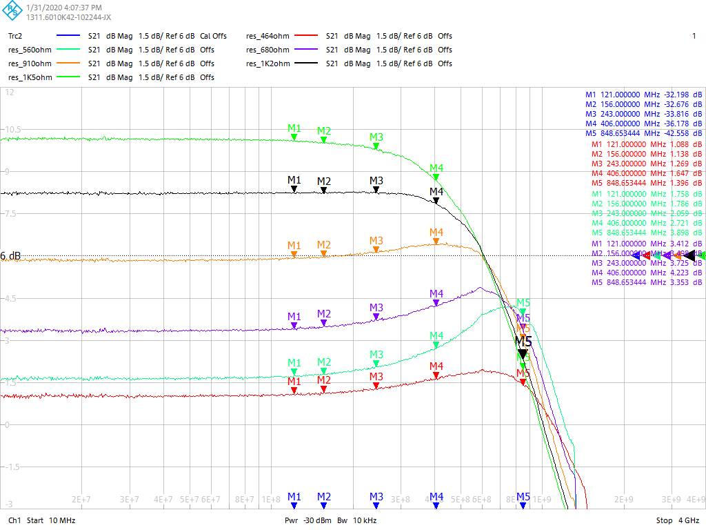 As a course of checking the setup, I've tried them with 2 different Network Analysers, and rebuilt the boards several times, including replacing the ICs, yet the results remain the same.