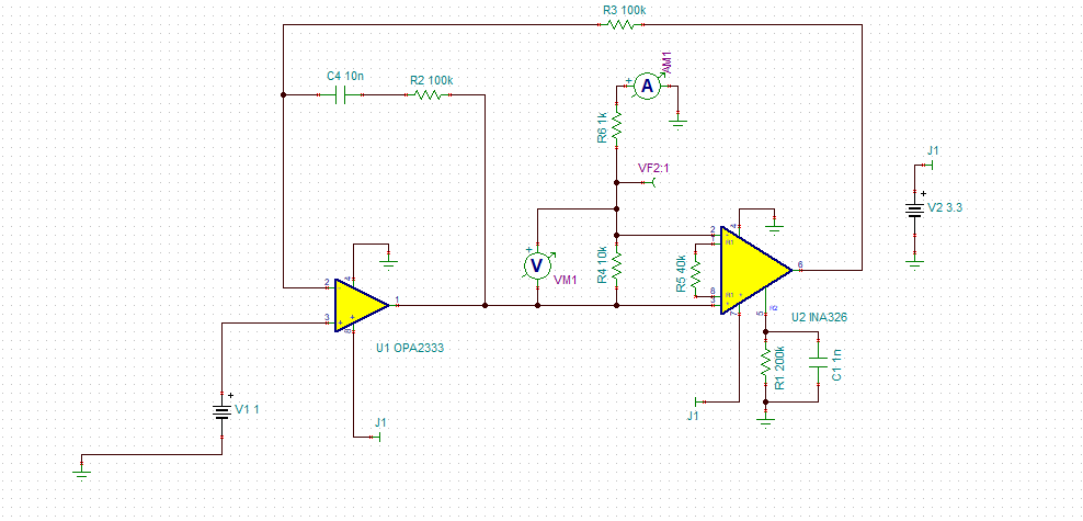 I am trying to get the output current to configure 10uA/Volt input. So far this design works, until I try to go higher than 2V. It seems to be having some convergence issues. I believe it has to do with INA326. I wanted to see if someone had more insight on the subject. Maybe how I need to set some Analysis Parameters? Any information can be helpful.