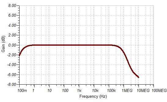 - gain: 1V/V across a 120-150 Khz