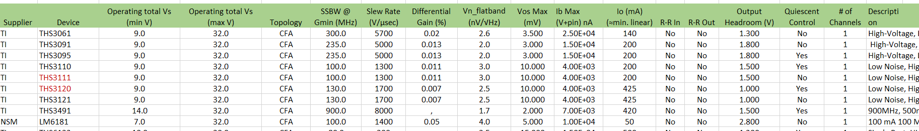 In terms of parts that are similar to the LM6181, the THS3491 & THS3001 are the only two single-ended current feedback amplifiers that can go up to the same supply range of 32V. Both of these parts have greater bandwidth and slew rate capabilities in comparison to the LM6181.