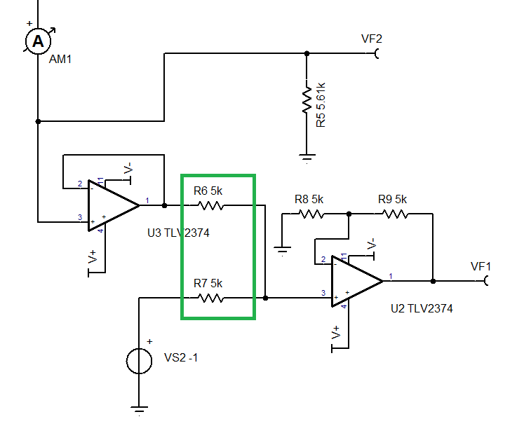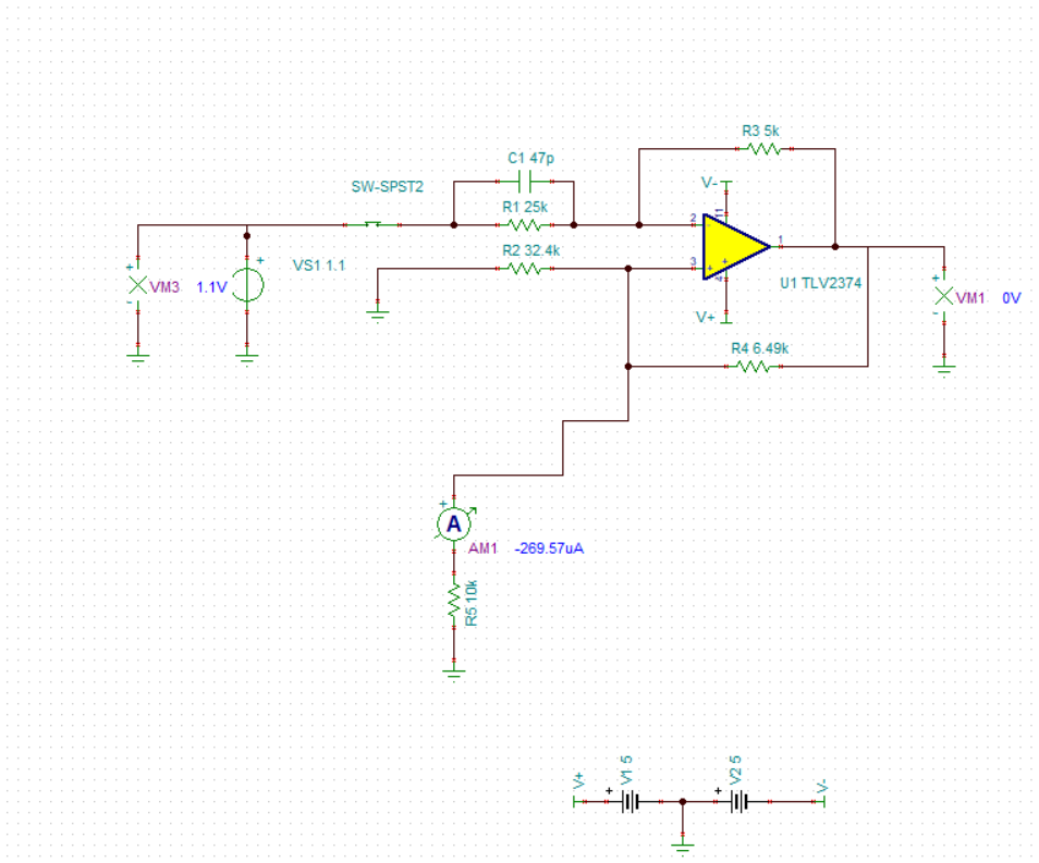 I designed a Howland current pump circuit with TLV274. 1.1V was fed to the Howland pump, then a 5.61kOhm resistor was connected to the output of the circuit to verify the output current. Theoretically, I expect to get 34.uA (1.1V/32.4k=34uA). But with my multimeter measurement, I read 9.1uA. Also I measured the voltage transient across the resistor and it was 128.643mV so I calculated the current based on the voltage transients (128.643mV/5.61kOhm=22.9uA). Hence, the theoretical and measured current was not matched with each other. Simulation result with TINA-TI was also unrelated what I expected. So, my question is that why the simulation, theoretical, and measurement results were not proved each other?