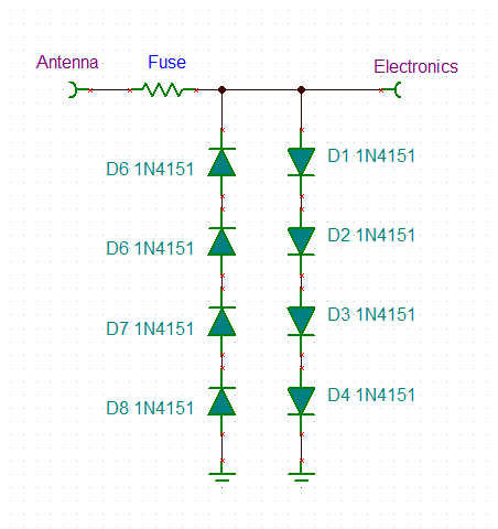 I am using the LMH5401 as a preamp for a wideband active antenna. We have the system working to our satisfaction. Now I'm trying to figure out a way to protect not just the amp but also downstream circuitry from strong signals that may sometimes be present in our environment. These signals can be very large and potentially damaging. The signals can last for a fairly long time (several 100 milliseconds and have frequencies ranging from 100 MHz to 1 GHZ). Does anyone have an idea of what the best technique might be for this sort of thing.