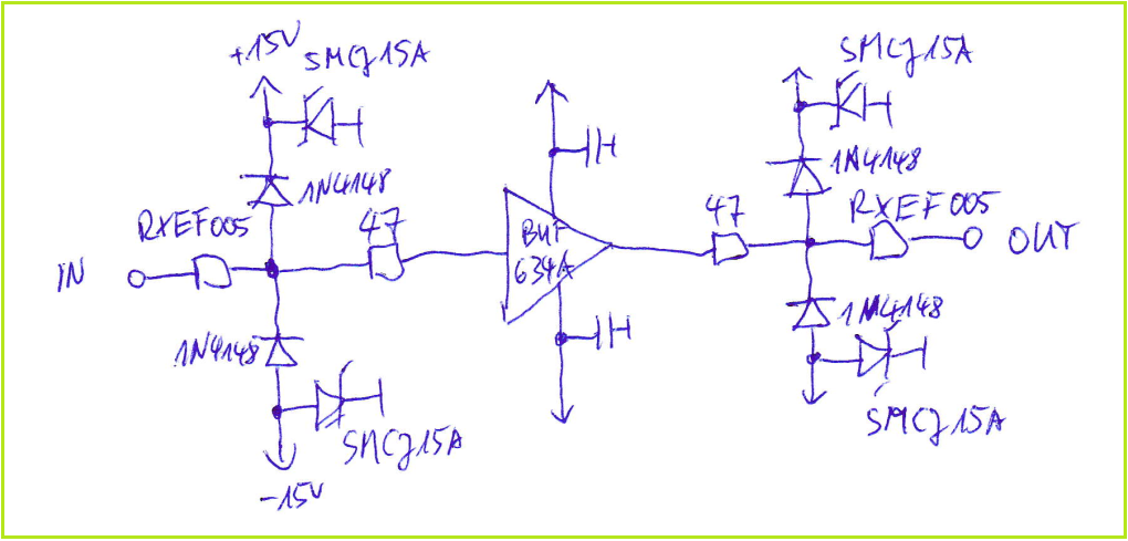 I am deciding which TVS to use to protect the Vs and Vinput. The data data sheet says max is +/-18V or 36V for supply. Max Input volts says +/-Vs (which I assume means 36V). If I pick a bidrirectional TVS that clamps at 36V, would that protect the Vinput port? Is 36V the highest I dare go? (Actually using a BUF634P