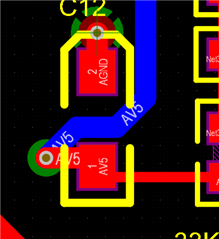 the angle between trace AV-5 is less than 90deg,will this bring noise to opa847's output?