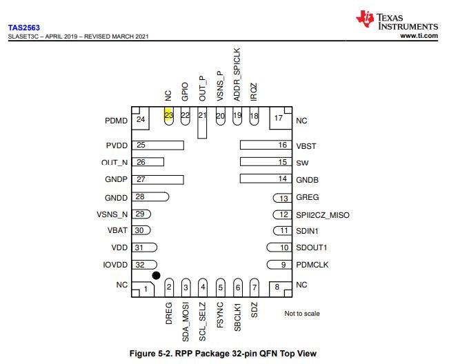 There is missing description of pin 23 (NC) in TAS2563 QFN datasheet. We need product line to update the datasheet.