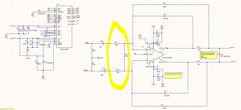 Hi, I am trying to buffer the pga2500 to an ADC with OPA1637