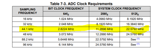 In that case would need to run XTI mode to get 44.1kHz but clock would need to be changed from 24.5MHz to be compatible as seen here: