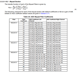 I want to know how can I disable Biquad filter. Specifically I am using ADC Decimation Filter B for sampling audio over microphone, In that there are 3 Biquad filters. I want to disable Biquad filter C. Or is there any way to disable it, If yes then I want to disable it.