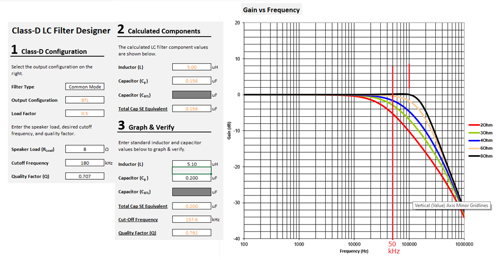 The power level of the TPA3255 is about right. Can it be made to operate from 50 - 100 kHz ? Or is there something better ?
