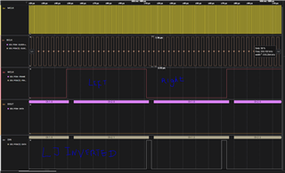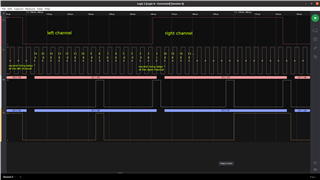 Feeding 1,2,3,4,5... to DIN and reading it back from DOUT. BCLK is inverted here. You can see that ch2 is (ch1 - 1) "behind". To me this seems like an alignment issue because on TLV320AIC3100 ch2 should equal ch1 (mono audio). Can you spot what's wrong?