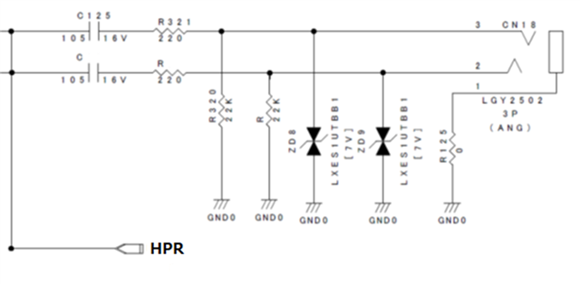 TLV320AIC3100_HPR terminal - following circuit - earphone jack connector (CN 18 in the figure) - speaker cable - speaker (consumer product)