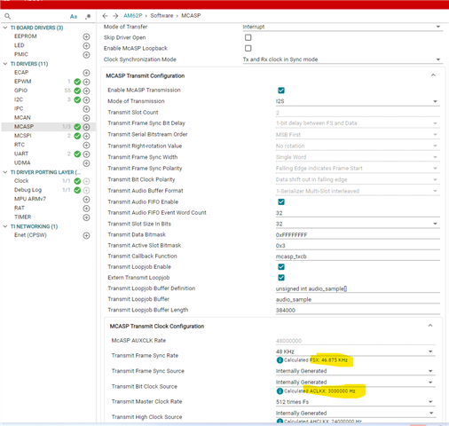 We are trying to integrate TAS2505 DAC with TI AM62Px SOC. Our connection is as follows and we use BCLK and MCLK is not using.