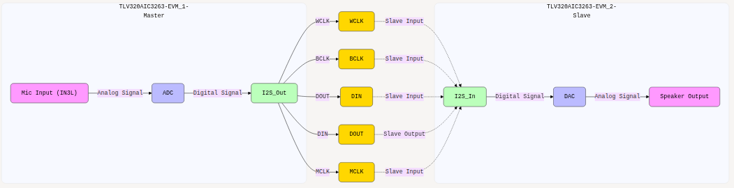 This configuration allowed me to transmit and receive audio between the two EVMs successfully.