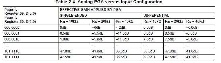 Our customer sets all of gain in the TLV320AIC3204 to 0dB by differential input.