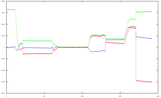 Unfortunately, when I plot the values we measure in octave we can see various jumps in our measures: