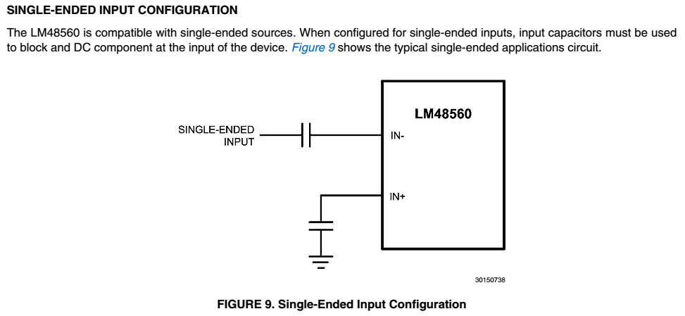 My customer who uses LM48560 with differential input is now trying to change their circuit to single-ended input.