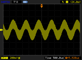 Therefore, I tried entering 1kHz same sine wave to right input and left input.