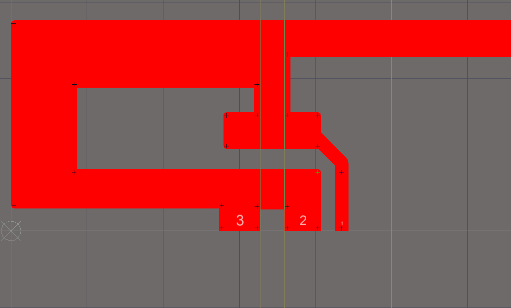 After drawing the antenna body without too much trouble I noted that there are no dimensions specified for the two pins that connect to the ground plane. I believe that the missing dimensions are not critical, but just to be sure and and thus avoid wasting a prototype, I've made the first pad 1.35mm wide and the second 1.20mm wide with a separation between them of 0.8mm, I'm good to go with these dimensions?