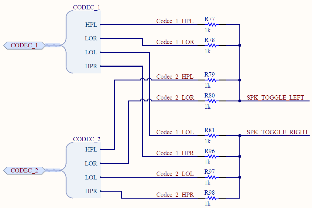 We use multiple codecs where the outputs are mixed with a simple resistor network. Because the output impedance of the HP & LO are different, there is an imbalance of the mixing. So what is the "input" impedance of the output amplifiers (HPL, HPR, LOL & LOR)?
