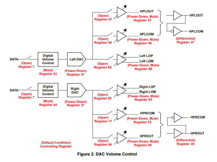 Can you please tell me How can I change volume of DAC. I am confused in register 43,44,82 and 92.