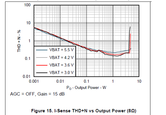 It is noticed that on page 11 of TAS2552 manual, the THD+N percentage of I-sense for 8ohm load increases greatly to 5% for 0.001W. In our case, the power is even lower, does it mean that the THD+N is even higher?