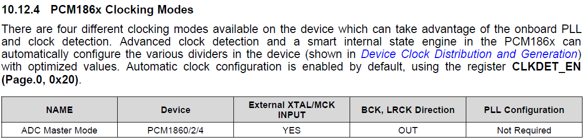 I want to setting master mode on PCM1862. The external crystal is 24.576MHz.