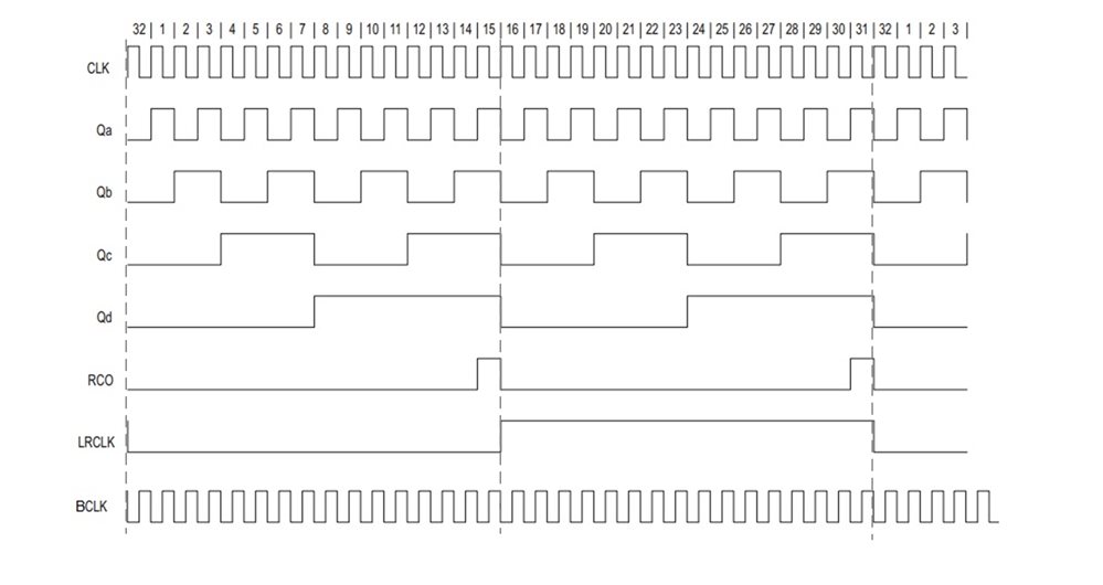 So, the "sampling frequency", or the frequency that I should be reading samples out of the codec should be 625khz / 32 bits = 19531.25.