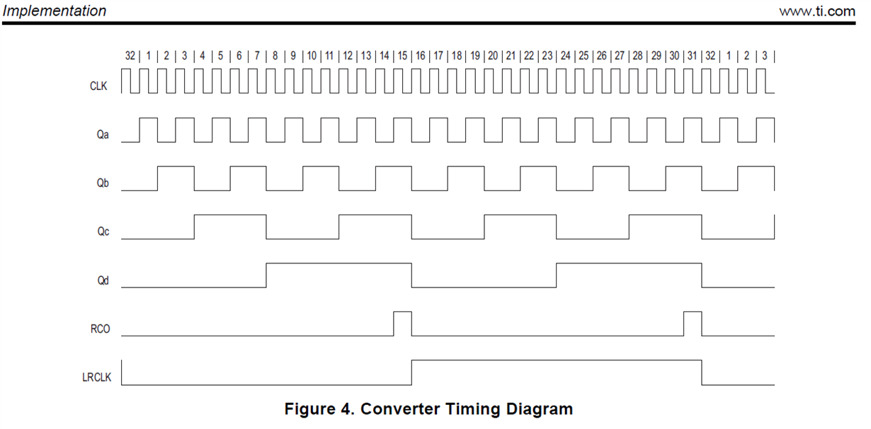 However, in my input data stream that I read from the codec, I can see "flat spots" in my input sine wave periodically occurring once every 32 samples. I have no explanation for this. My SPI ports are all DMA driven so interrupt latency should not be an issue. By DMA sample size is currently set to 64 samples, so even that doesn't correspond to the precise 32 sample flat spots. It sure looks like I'm getting out of sync with the codec somehow, but I cannot see where this could be happening.