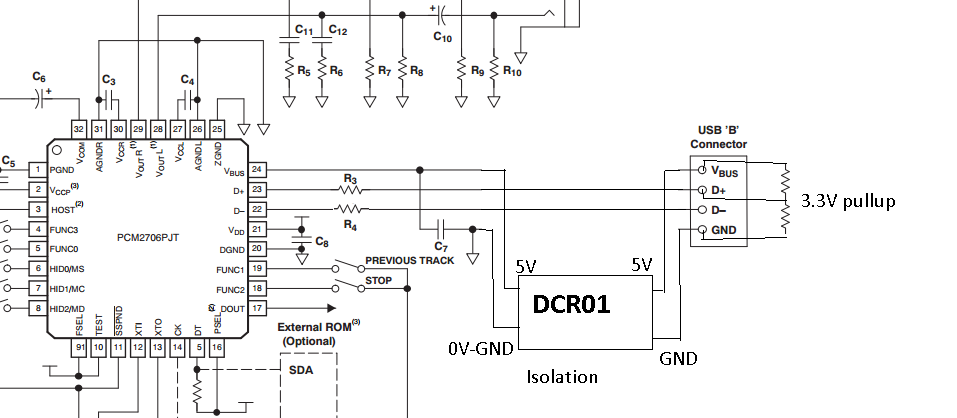 i want to make a project with PCM2707 bus powered but i need GND isolation from usb-pc ;