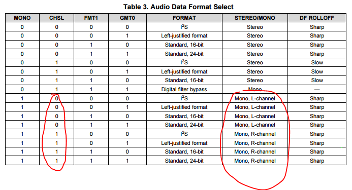 I want to use the PCM1794 in mono mode with 2 PCM1794. I understand that I have to delay the signal of 7 bits + 32 bits to align the two signals for the two dacs.