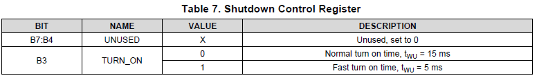 LM48560 has TURN_ON register that can be set turn on time 15ms or 5ms.