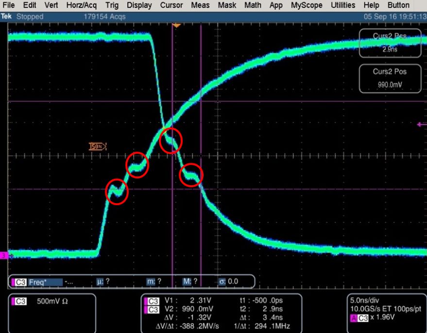 When there are glitches or steps at the rising edge or falling edge on BCLK or LRCK,