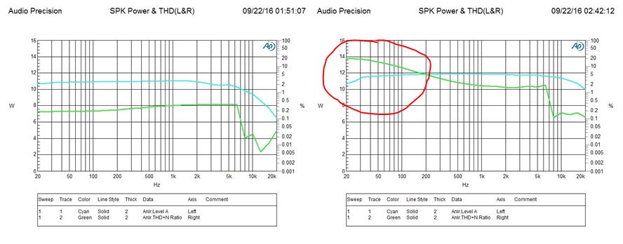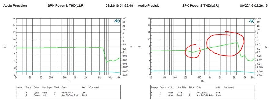 Left: TAS5731 EVM, Right: System Board with TAS5731M -> Any potential problem to get low THD+N at 300Hz, high THD+N at 5kHz? How to improve it?