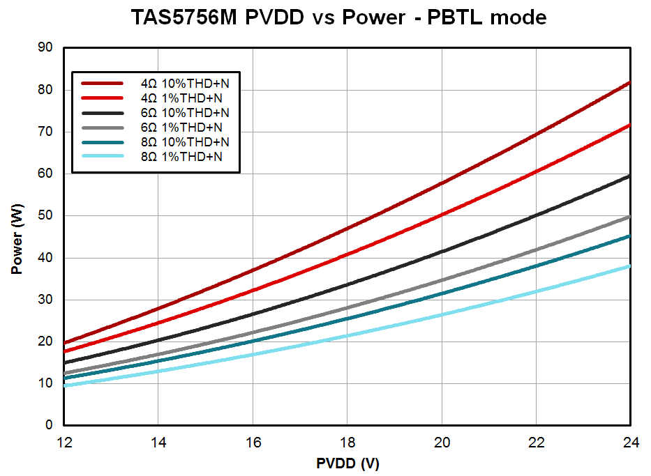 Do you have the data about output power vs PVDD at PBTL with 6ohm load?
