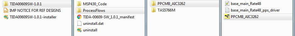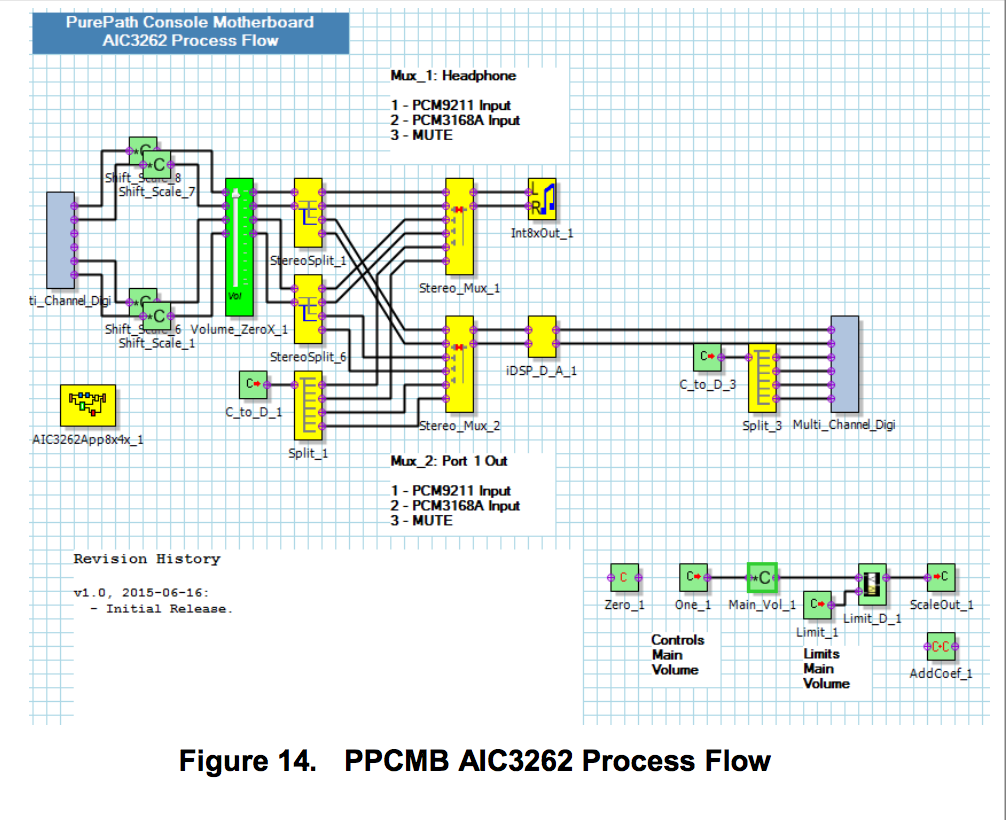 Is the PPCMB_AIC3262 .pfw file, as loaded on the PurePath Console Motherboard (Rev. G), available for download? I would like to make some modifications. I have found a screenshot of the diagram (see below), and the header files in the Self-Boot Easy Demo project. It would save a lot of time to have the Process Flow file.