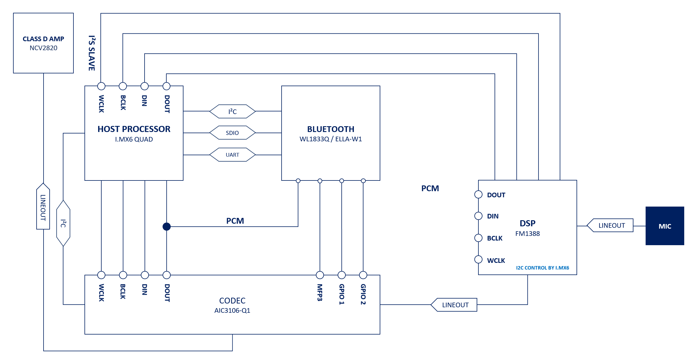 Can We Routing Voice From Bluetooth Through AIC3106-Q1 To Host Processor? It Means 2 Channel I2S (Secondary May Use Internal Mux) Bus Shall Be Enabled In The Meantime? Let Me To Clarify My Purpose. I Want To Record Voice From HSP Device Back Into Host. My Older Question In Another Post Also Points Out It. Your Block Diagram Only Shows One DOUT PIN For Bluetooth PCM Use. Does It Mean We Cannot Use Both Of I2S/PCM At Same Time? If You DOUT PIN Is Occupied By Either Of Host Processor Can Another Path For Hands-Free Can Be Used In The Same Time?