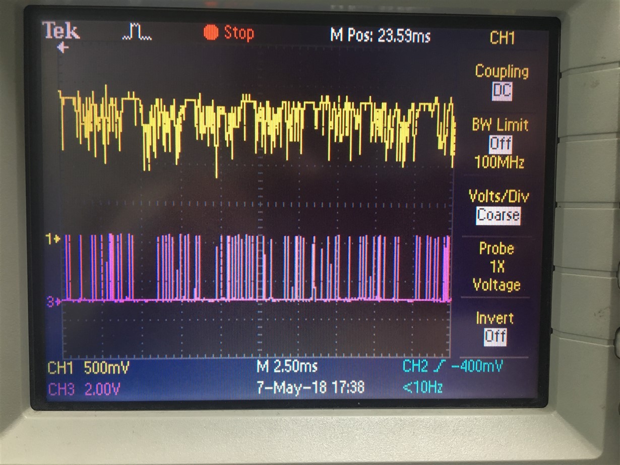 Yellow colored waveform indicates Vout output and pink one represents Dout output.