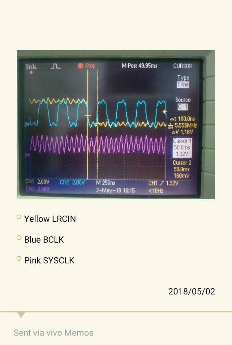 - system clock is set to 13.2 MHZ, bit clock is coming around 2.79 MHZ, LRCIN is 48 KHZ for audio file of 48KHz.