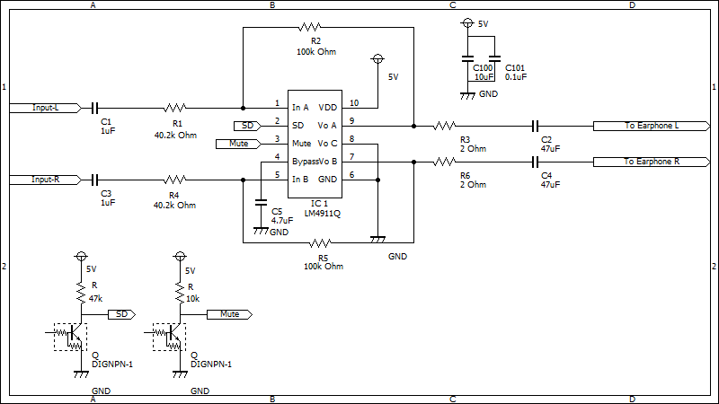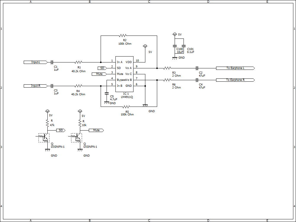 CH1: Cbypass(C5), CH2:Output (To Earphone L) CH3: SD CH4: Mute