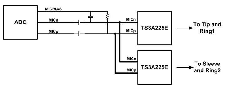 I have some questions regarding the TS3A225E. I'm looking for a solution to distinguish any kind of microphone jack and route it. I'm looking for an IC capable of distinguish a microphone in the tip and ring 1 too. My proposed solution is one like this: