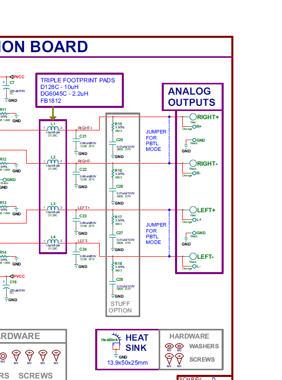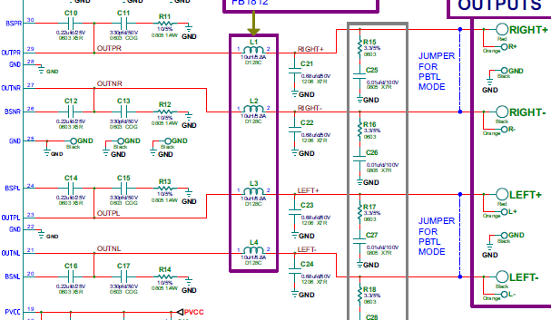 In my design with TPA 3116D2 , I have a supply voltage of 24 V DC . I know that 3116D2 can drive 100 watt 4 ohms maximum. I need to direct drive 50W to maximum 100 Watt HiZ speakers without using any special 70 Volt/100 transformers in the output stage of the amplifier. Can i drive this high impedance speakers directly by adding only two 670 uF 50 Volt capacitors in series to the output of my circuit which is also acting like a LPF filter? or Can you advice me any other network components to match directly to the connection of the Hiz Speakers.