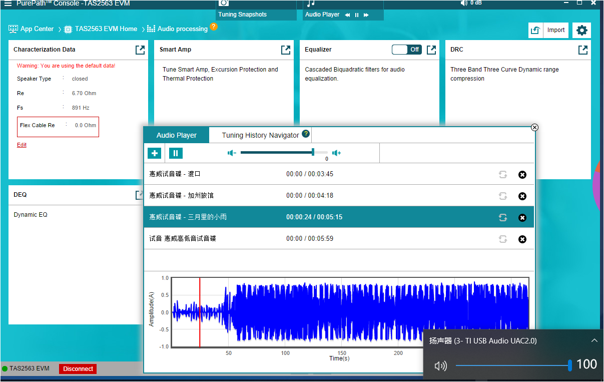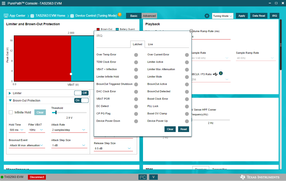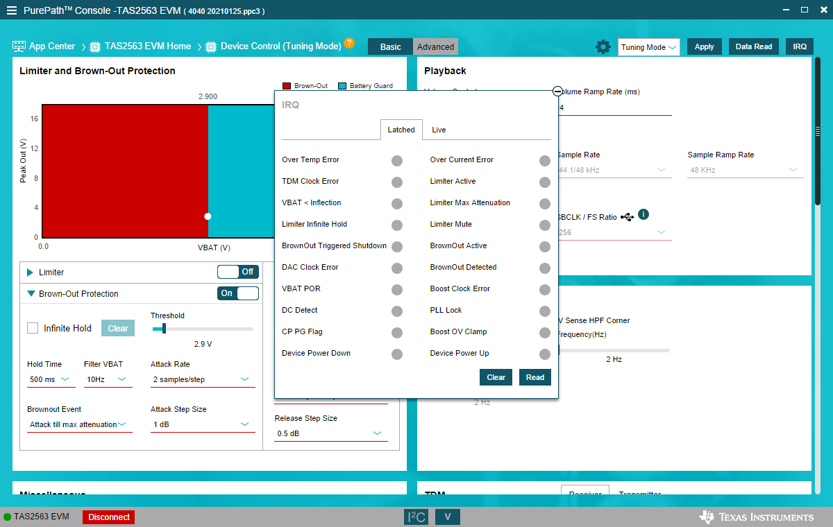 Since we see the TDM error here, can you probe the SBCLK pin (pin 15 on J7 on the TAS2563YBGEVM board) with an oscilloscope? Also, if possible, can you test with an external I2S? To do this, you will need to remove the ASI1 SEL jumper on the PPC3-EVM-MB.