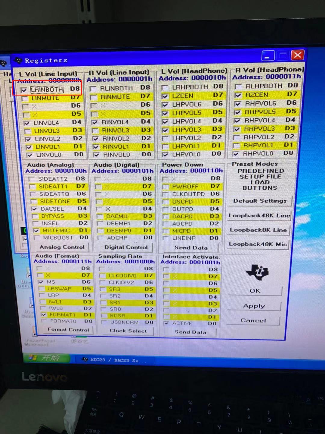 1、 First,I choose the LRS bit, then i chnage the L VOL D4 D3 D2 D1 D0 from 10111 to 10001,and i find that only left channel volume is changed,however,right channel volume don't change.Normal,i think that right channel volume should be also changed.please see following picture,
