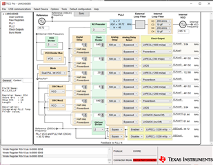 My customer set up the LMK04806 to output 61.44MHz on CLKout 10 and CLKout 11 as shown below.