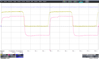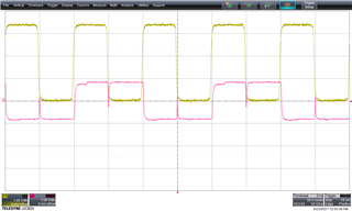 I am routing the PRIREF to Output7 with CMOS(+/HiZ) . The output of this is shown in Red together with the input clock Green. I don't understand what is going on here. It seems like a transition problem and that a flip-flop is involved. When PRIREF is routed to output I was expecting a buffered version only. The input clock is very clean without and reflections or bad flanks(as shown in Yellow). Any idea what is going on and what is wrong?
