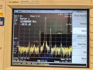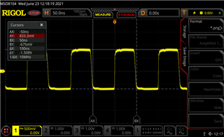 I am using the LMX2594 in integer mode with a 10MHz reference using the OSC_2X function to achieve a 20MHz PFD. I have an amplifier for the 10MHz reference preceding the LMX2594 reference input that does a good job of increasing the slew rate and squaring up the signal, however the duty cycle is not exactly 50%, it is closer to 47%, waveform picture attached of amplified 10MHz reference. What effects can I expect to see from this non-50% duty cycle reference using the OSC_2X function?