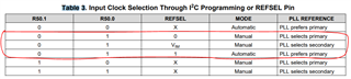6) I have read page 33 of the datasheet, but I don’t know what R50.1 and R50.0 are set to when using ROM Option 45. I have tied the REFSEL pin to VIM. With ROM Option 45 will this force the device to use the secondary crystal input pins manually or will the device automatically select the crystal by itself?