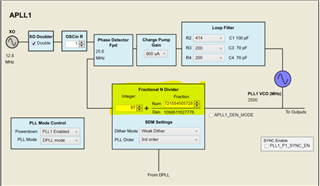 My first idea was to use APLL1 with BAW VCO for very low phase noise, but I've read on the forum that we can use APLL1 with integer divider only ? After reading the data sheet, I must admit that I do not understand why ?