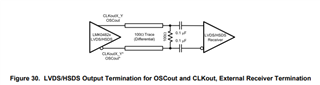 The output format of CLKout is LVDS and AC-coupled.