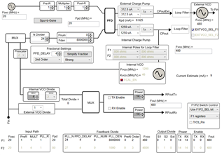 Here is my register setting with 20MHz input and 480MHz VCO. What is your input and output frequency in your configuration?